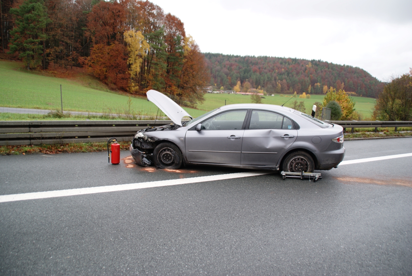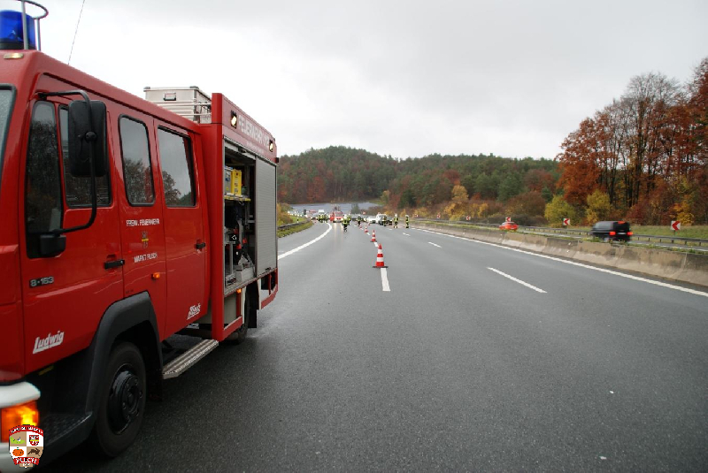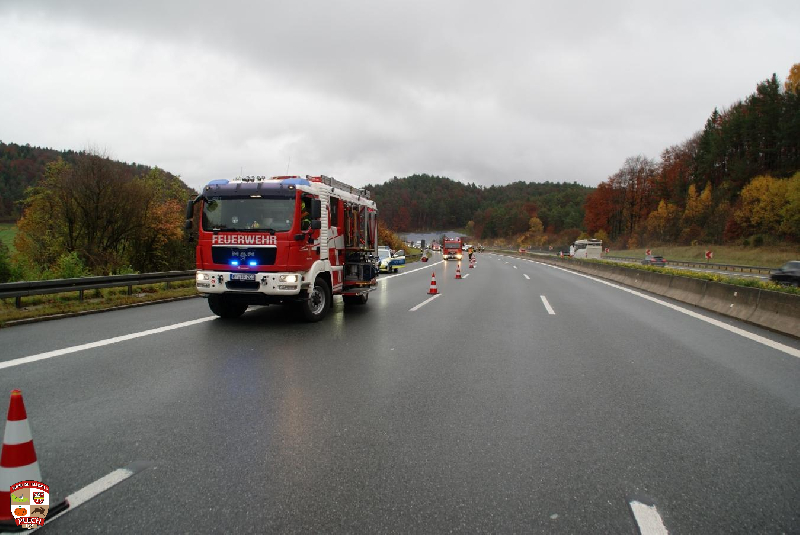 Sonntagnachmittag wurden wir zu einem Verkehrsunfall auf die BAB9 alarmiert. Zwischen Plech und Hormersdorf ist ein PKW in die mittlere Betonleitwand gekracht und anschließend auf der rechten Spur und dem Standstreifen zum Stehen gekommen.