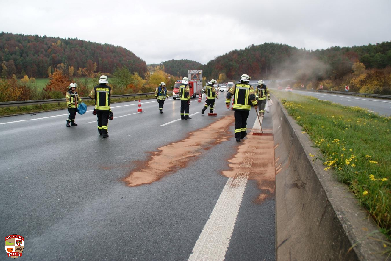 Wir sicherten die Unfallstelle auf dem rechten Fahrbahnstreifen ab. Im Laufe der Absicherung wurden größere Trümmerteile und eine Ölspur auf der linken Spur gesichtet, weswegen wir die Autobahn für Reinigungsarbeiten komplett gesperrt haben.
