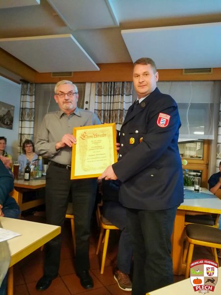 Am Samstag, den 23. November 2019 fand die Jahreshauptversammlung der Freiwillige Feuerwehr Plech im Gasthof „Zur Traube“ statt. Da die Vorstandsvorsitzende Diana Marx verhindert war, übernahm ihr Stellvertreter Peter Heckel die Leitung der Versammlung.