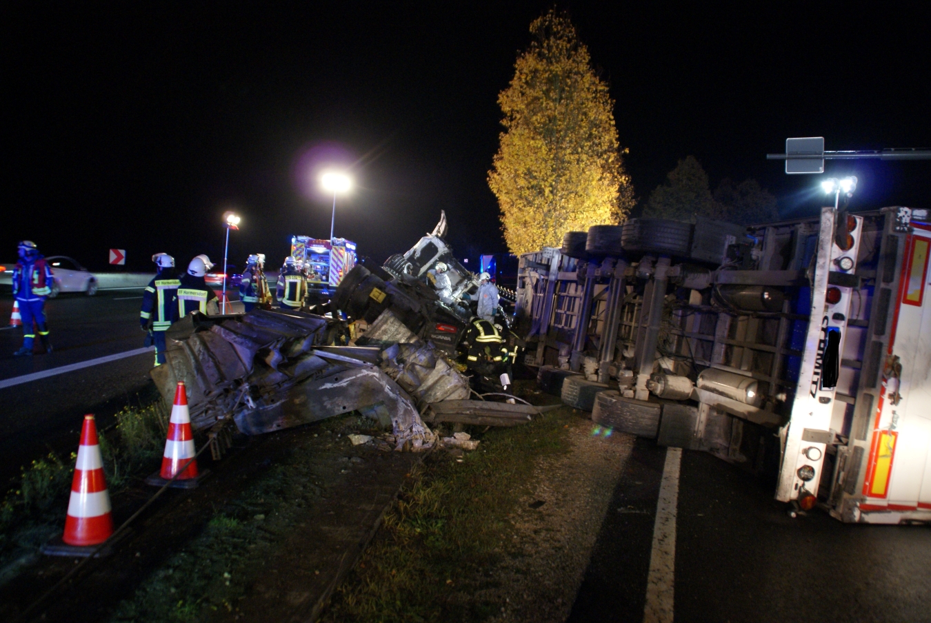 Verkehrsunfall mit LKW, Person eingeklemmt |