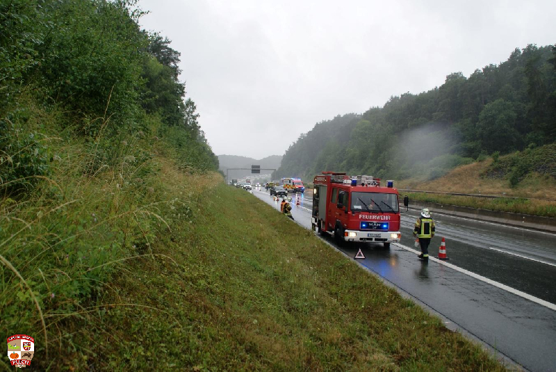 An der Einsatzstelle standen zwei Fahrzeuge auf der linken und mittleren Fahrspur und zwei weitere etwa 150 Meter weiter auf dem Standstreifen. Zusammen mit den Kameraden aus Ottenhof-Bernheck sicherten wir die Unfallstelle auf der BAB9. Glücklicherweise war keine Person in einem Fahrzeug eingeklemmt. Nach Absprach übernahmen die Kameraden aus Schnaittach mit ihrem VSA die Absicherung. Wir sicherten dann die beiden Fahrzeuge auf dem Standstreifen. Für die Zeit der Unfallaufnahme durch die Polizei wurde die Fahrbahn auf einen Fahrstreifen begrenzt.